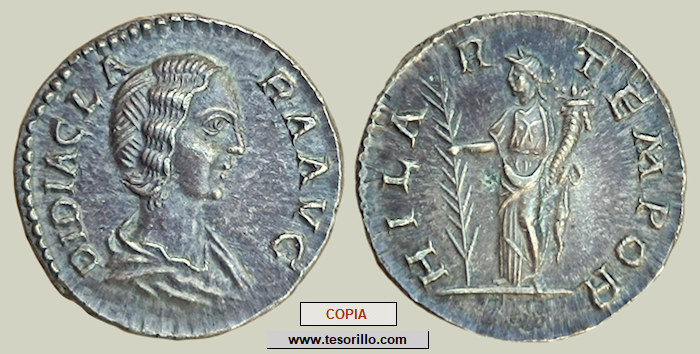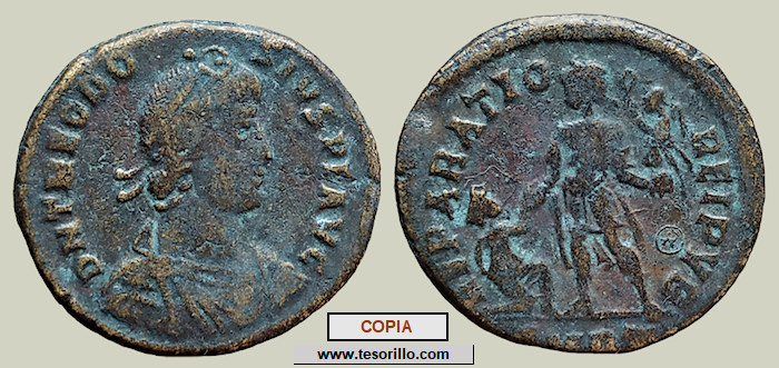 que reproduce con bastante fidelidad la moneda original, pero no es de plata sino de cobre recubierto de un fino plateado.