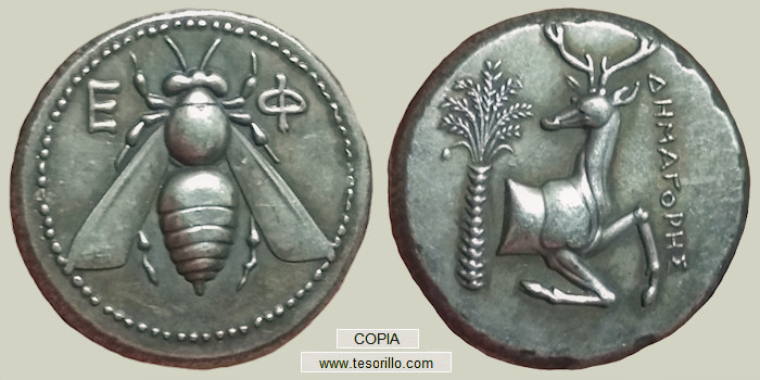 Corresponde al tetradracma (de plata y aprox. 15 g y 24 mm) acuñado en
