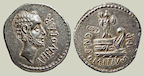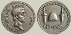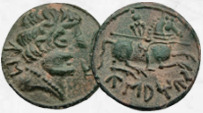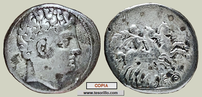 Anverso: cabeza laureada de Apolo hacia la derecha.