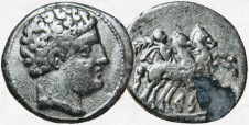 Anverso: cabeza de Zeus mirando hacia la derecha.