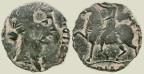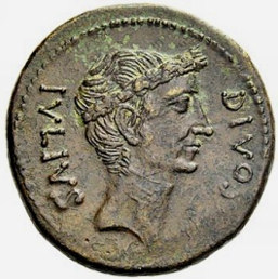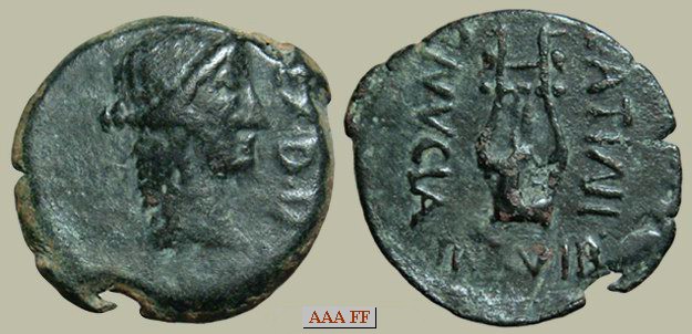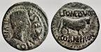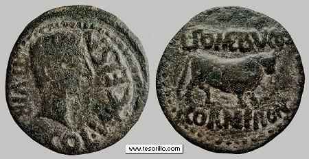 Moneda de bronce acuñada a finales del siglo I a.C. en una ceca indeterminada de Hispania, imitando los