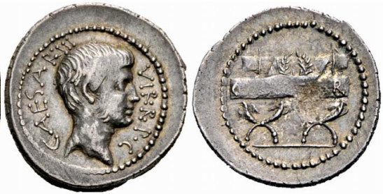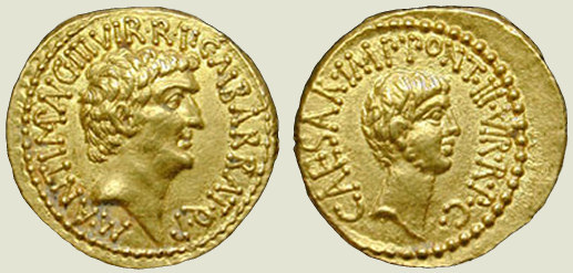 provincial de Marco Antonio, Marcus Barbatius Pollio, mostrando la imagen de los dos