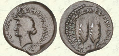 Busto femenino con corona de espigas (¿Ceres?), mirando hacia la izquierda.