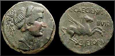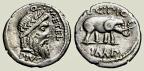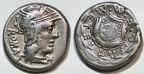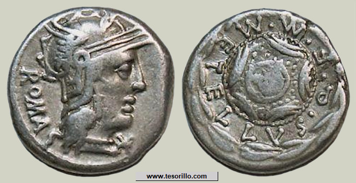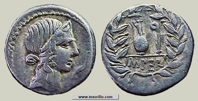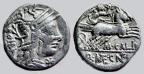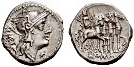 Moneda de plata acuñada en Roma (127 a.C.) por el