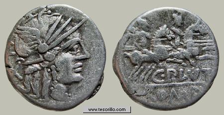 Familia de origen plebeyo, desconocida en la historia de Roma. Autores como Crawford, Eckhel y Cohen consideran que este magistrado monetario C. Plutius era hijo de C. Plautius, pretor en 146 a.C., es decir, asignan estas monedas a la familia Plautia. Sin embargo, Seaby o Monsen creen que es un familia distinta. |