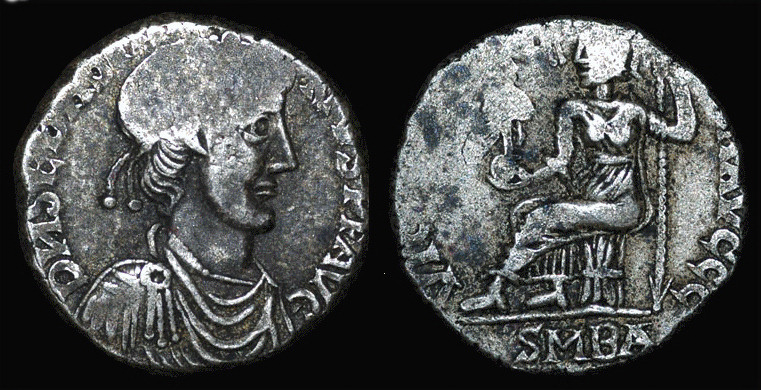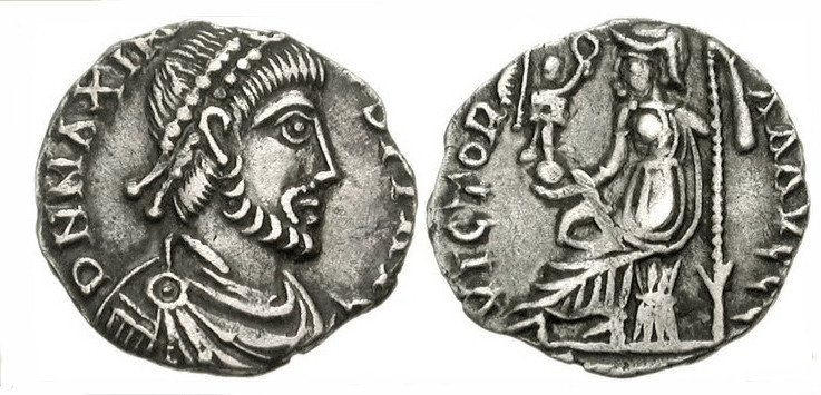 Monedas falsas procedentes de cuños nuevosREF: F208 Silicuas del usurpador Máximo. Cuños falsos.