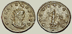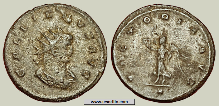 destruían inmediatamente los cuños de los emperadores ya fallecidos. Las leyendas IMP C CLAVDIVS AVG y GALLIENVS AVG, así como el estilo de los bustos,