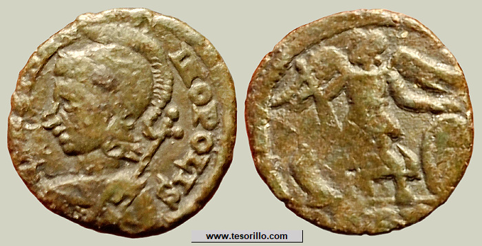 Moneda de bronce acuñada en tiempos de Constancio II, entre los años 337-340.