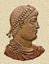 A.D. 364Reverse Type 180 Emperor receivig shield inscribed with swastika from hand above.