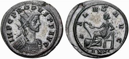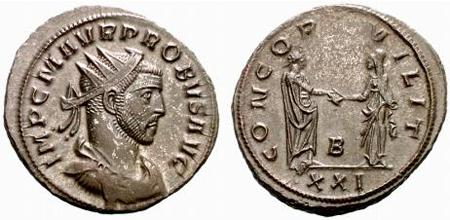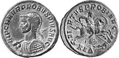 en latín equivale a KA en numerales griegos). Más información en: Divus Probus.