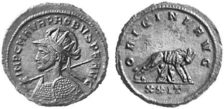 1ª oficina de Roma, emisión 6ª, durante el año 281 d.C.
