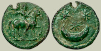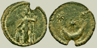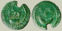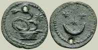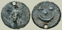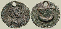 El ejemplar mostrado en esta web (fig. 3) procede de la parte occidental de Hispania Baetica (actual provincia de Cádiz), lo que abunda en la opinión del Dr. Markov de que la ceca no sea Nikopolis. Me pregunto si no sería Roma, de alguna forma estas acuñaciones me recuerdan a las emitidas en Roma durante el siglo IV con motivo de los Festivales de Isis. Es de destacar que prácticamente en su totalidad estas piezas se encuentran agujereadas por lo que debieron de haber sido utilizadas con algún fin concreto, sin duda tuvieron un motivo religioso. Ciertamente coincido con el Dr. Markov, yo tampoco creo que sean monedas, por lo que -mientras no conozcamos la función de estas acuñaciones- creo que la denominación más correcta es la de ficha (token). Veamos ahora algunos interesantes ejemplos: Con todo mi agradecimiento a mi amigo Sergio, por darme a conocer este enigmático tipo de acuñaciones. Madrid (España), 31 de octubre de 2015 |