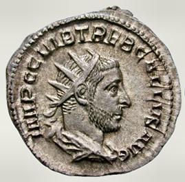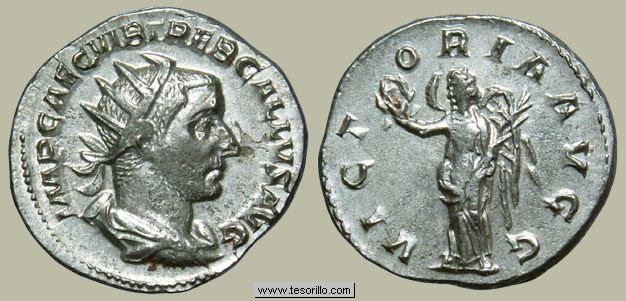 Anverso: IMP CAE C VIB TREB GALLVS AVG