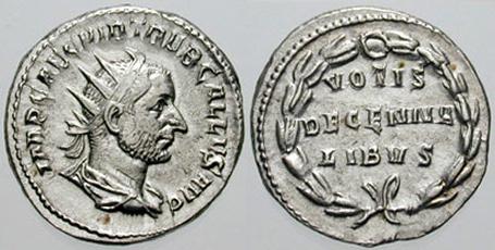 Anverso: IMP C C VIB TREB GALLVS AVG