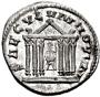 Templo tetrástilo con Tyche (Fortuna) sentada a la puerta y representación de la divinidad del río Orontes fluyendo a sus pies.