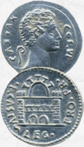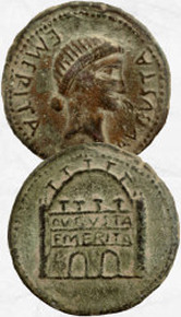 4.- Reproducción de un denario de Emerita (Augusto, 25-23 a.C.).