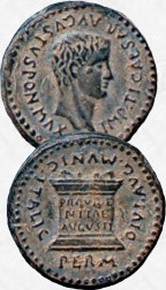 6.- Reproducción de un dupondio de Emerita (Tiberio, 14-37 d.C.).