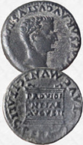 5.- Reproducción de un dupondio de Emerita (Augusto, 25 a.C. - 14 d.C.).