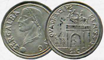 Reproducción de un as Tarraco Galba, 69 d.C. (Imagen: www.ebay.es) |