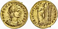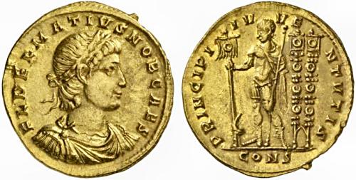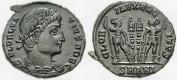 Busto laureado del césar Delmatius, mirando hacia la derecha.