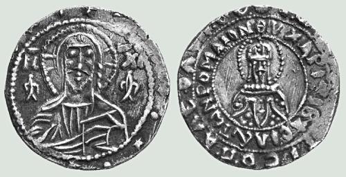 Moneda de plata de 19-20 mm y 1,83 g acuñada entre los años 1295-1320 en la ceca de Constantinopla, durante el reinado
