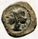 Anverso: cabeza femenina galeada ¿Tanit?, mirando hacia la