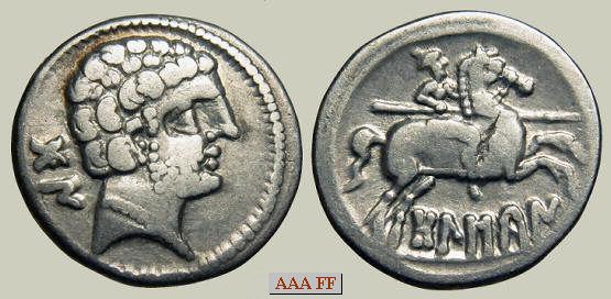 2,93 g, acuñada durante las guerras sertorianas, entre los años 83-72 a.C. en la ceca