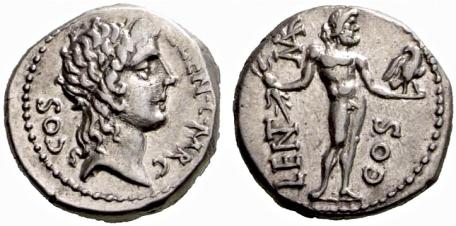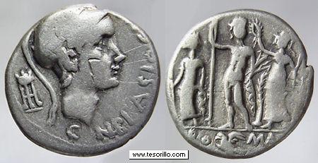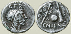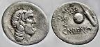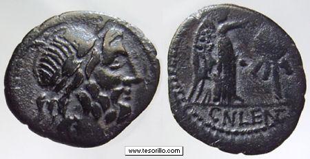 Acuñado en Roma (88 a.C.) por Cnaeus Cornelius Lentulus.