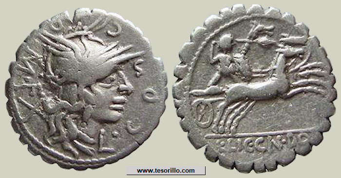 Familia de origen plebeyo, mencionada en la historia de Roma por primera vez durante la II Guerra Púnica donde se nombra a M. Cosconio. Se conocen también los pretores M. Cosconio (135 d.C.), C. Cosconio (89 d.C.) y C. Cosconio (63 a.C.) que fue además procónsul en Hispania. Otro C. Cosconio sería tribuno del pueblo en 59 a.C. El único magistrado monetario de esta familia, L. Cosconius M.f. emitió una serie de cinco denarios muy similares, pero cada uno acuñado con distintos monetarios de las familias Poblicia, Porcia, Pomponia y Aurelia. |